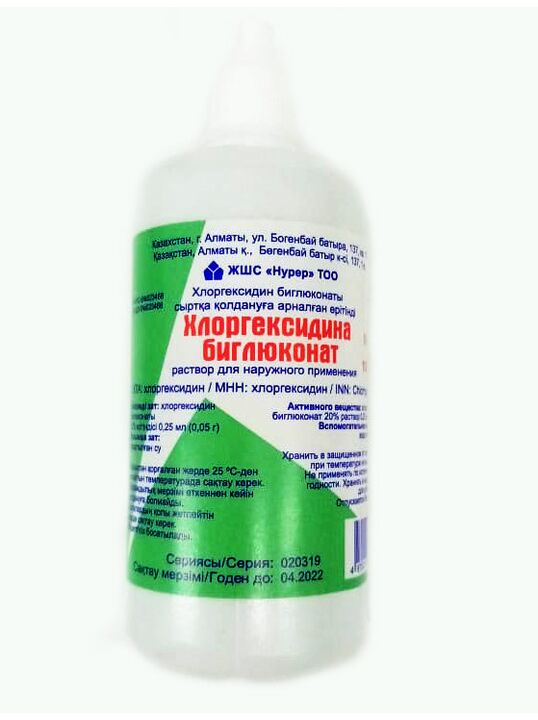 активное вещество- хлоргексидина биглюконат 20% раствор 0.25 мл (0.05 г)
