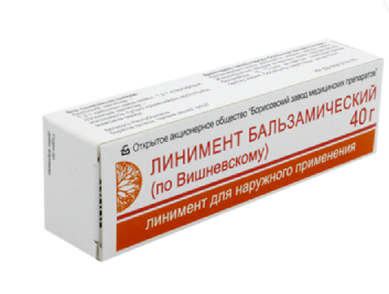 Линимент наносят 2 раза в день тонким слоем на участок поражения не втирая или накладывают марлевую повязку в 5-6 слоев, пропитанную линиментом.