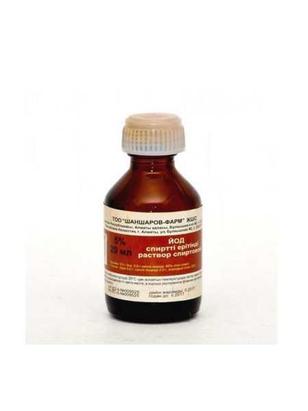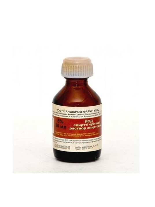 Раствор спиртовой 5 % 10 мл, 20 мл, 25 мл, и 30 мл.