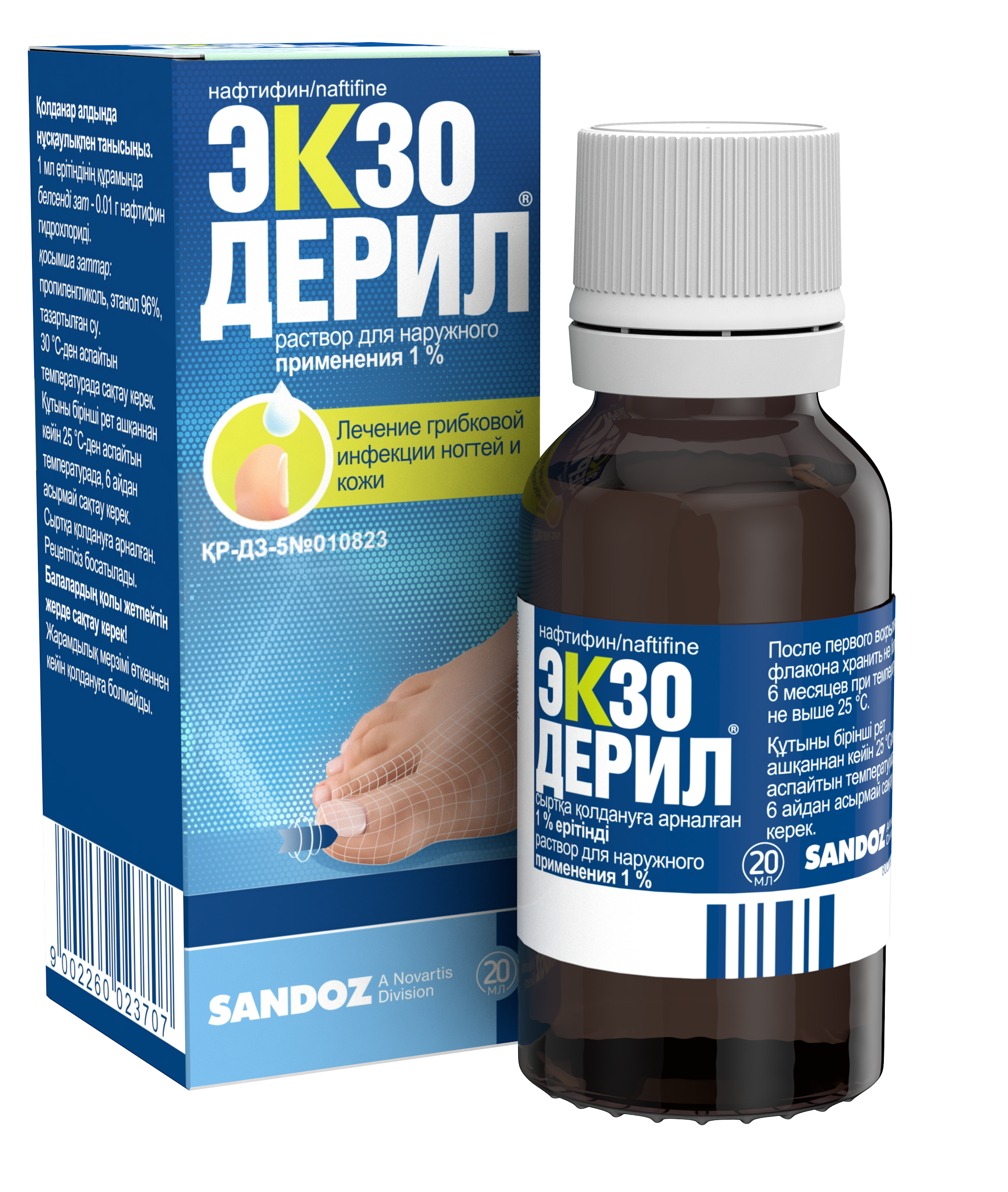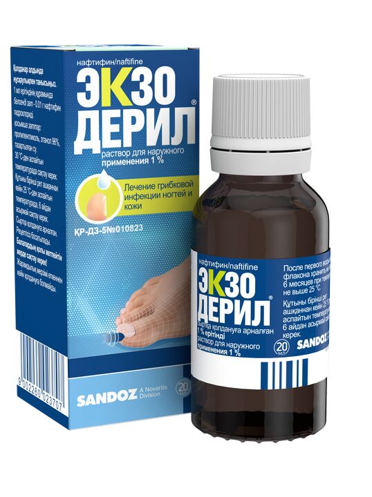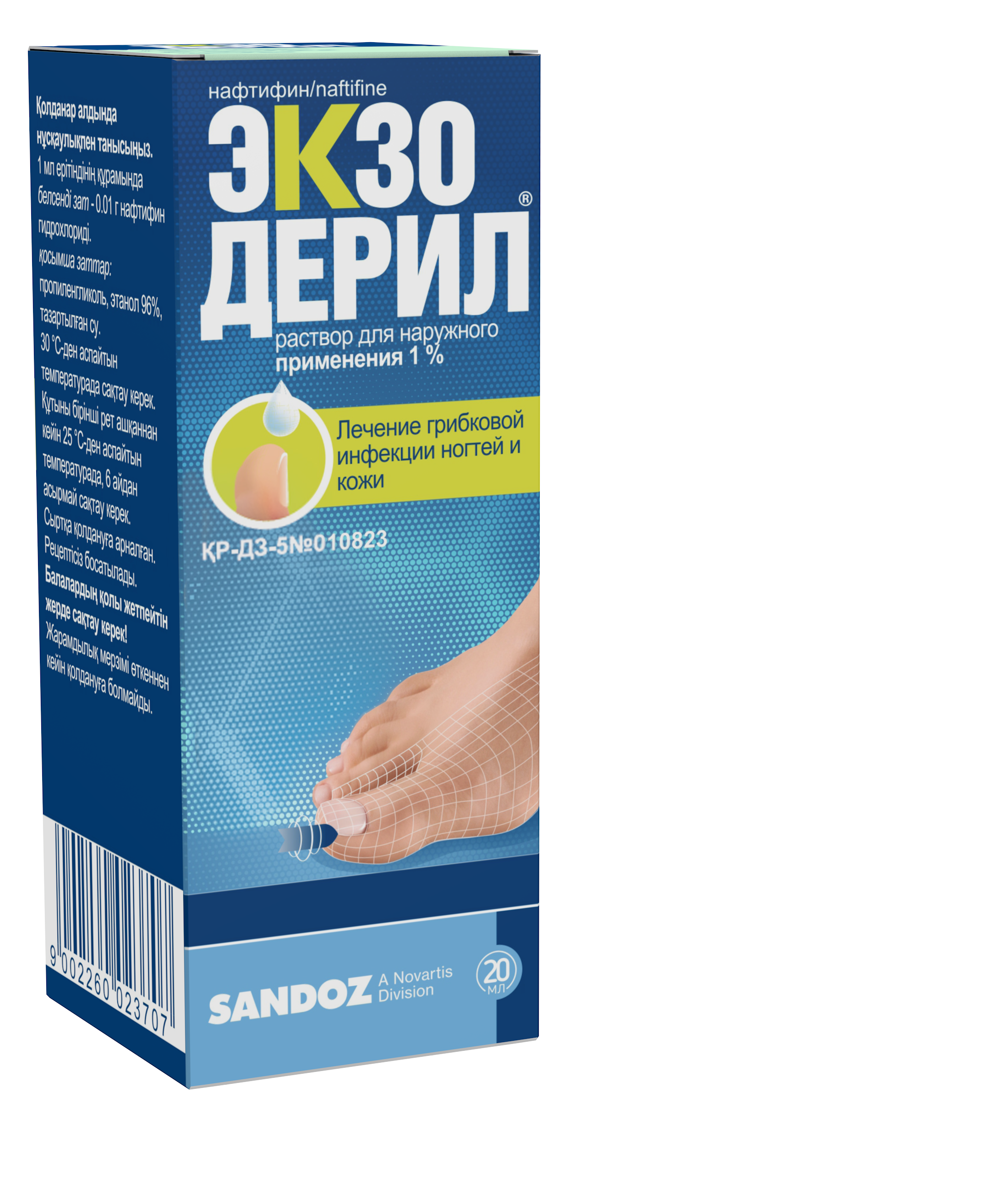 Экзодерил раствор является противогрибковым аллиламиновым препаратом, предназначенным для наружного применения. Его активным ингредиентом является нафтифин.