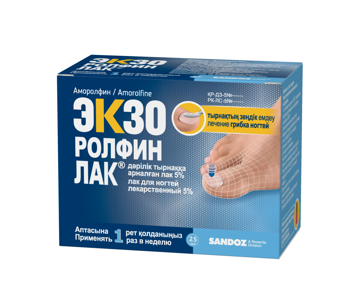 Препарат ЭКЗОРОЛФИНЛАК® наносят 1 раз в неделю на пораженные ногти пальцев рук или ног.