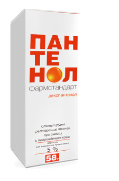 Пантенол Фармстандарт производное пантотеновой кислоты. В организме Декспантенол переходит в пантотеновую кислоту, которая является составной частью коэнзима А и участвует в процессах ацетилирования, углеводном и жировом обмене, в синтезе ацетилхолина, кортикостероидов, порфиринов; стимулирует регенерацию кожи, слизистых оболочек, нормализует клеточный метаболизм, ускоряет митоз и увеличивает прочность коллагеновых волокон. Оказывает регенерирующее, метаболическое и слабое противовоспалительное действие.