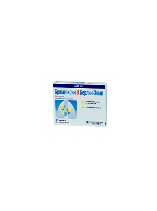 Длительность лечения определяется индивидуально в соответствии с показаниями и течением болезни. Бромгексин 8 Берлин Хеми не следует принимать более 4-5 дней, не посоветовавшись с врачом.