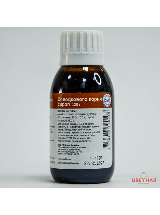 Солодкового корня сироп – препарат растительного происхождения. Оказывает отхаркивающее,спазмолитическое действие, в значительной степени обусловленное наличием в составе глицирризина, смеси калиевой и кальциевой солей глицирризиновой кислоты, а также флавоновых гликозидов (ликвиритин, ликвиритигенин и ликвиритозид). Отхаркивающее свойства солодки связано с содержанием глицирризина, который стимулирует активность реснитчатого эпителия в трахее и бронхах, а также усиливает секреторную функцию слизистых оболочек верхних дыхательных путей. Оказывает спазмолитическое действие на гладкие мышцы (за счет содержания флавоноидных соединений). Глицирризиновая кислота, подвергаясь в организме метаболическим превращениям, оказывает кортикостероидо подобное действие.