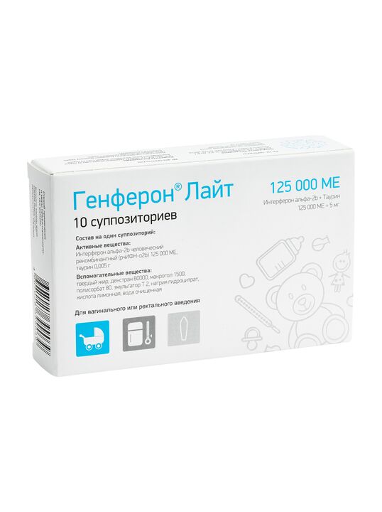 О случаях передозировки препаратом Генферон® Лайт не сообщалось. При случайном единовременном введении большего числа суппозиториев, чем было предписано врачом, следует приостановить дальнейшее введение на 24 часа, после чего лечение можно возобновить по предписанной схеме.