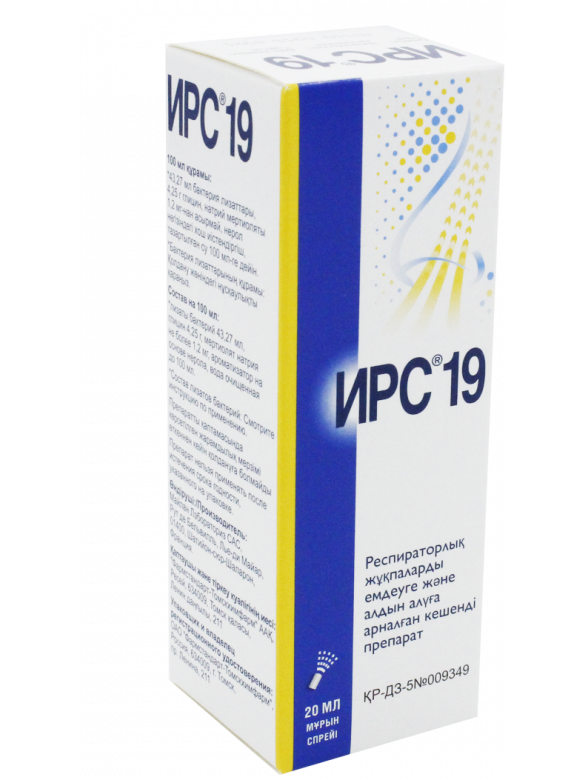 При распылении ИРС® 19 образуется мелкодисперсный аэрозоль, который покрывает слизистую оболочку носа. Это приводит к быстрому развитию местного иммунного ответа, вызывая немедленную мобилизацию защитных механизмов и запуская эффективную продукцию антител. Благодаря комплексному влиянию на иммунный ответ слизистых оболочек верхних дыхательных путей ИРС® 19 обладает двойным терапевтическим эффектом: лечебным и профилактическим. Лечебный эффект реализуется через неспецифические факторы местной защиты, которые начинают вырабатываться в течение 1 часа после применения ИРС® 19