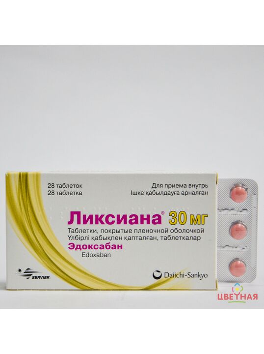 Ликсиана 30 мг, таблетки, покрытые пленочной оболочкой, содержит 30 мг эдоксабана (в виде тозилата). Вспомогательные вещества, наличие которых надо учитывать в составе лекарственного препарата: маннитол 99,190 мг.