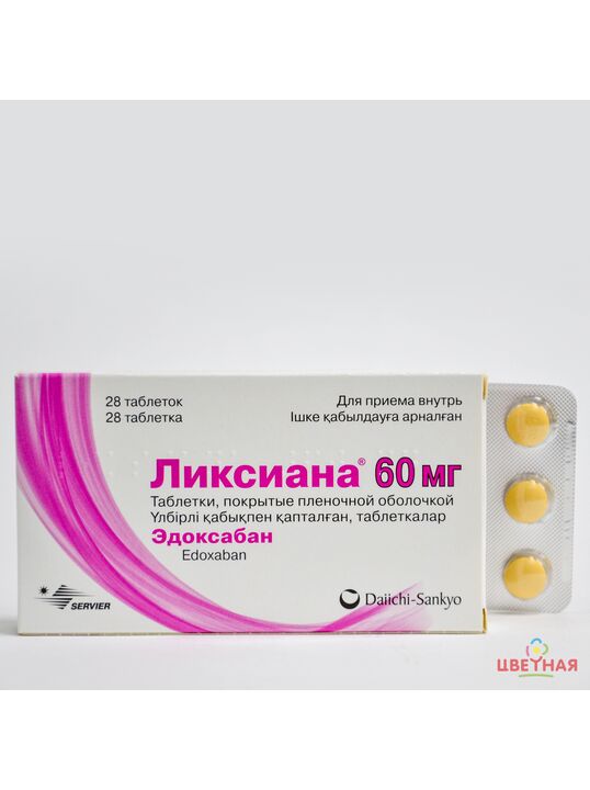 Ликсиана 60 мг, таблетки, покрытые пленочной оболочкой, содержит 60 мг эдоксабана (в виде тозилата). Вспомогательные вещества, наличие которых надо учитывать в составе лекарственного препарата: маннитол 198,380 мг.