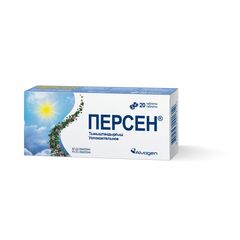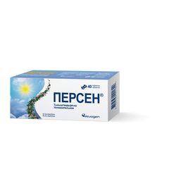 Торговое название Персен ® Международное непатентованное название Нет Лекарственная форма Таблетки, покрытые оболочкой   Состав Одна таблетка содержит активные вещества : валерианы корня экстракта сухого ((4-7):1) 35.00 1 мг, мяты перечной листьев экстракта сухого ((3-6):1)...