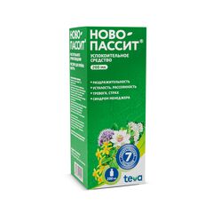 Лекарственная форма Раствор для приема внутрь Состав 100 мл препарата содержит активные вещества: Ново-Пассит экстракт жидкий* - 7,75 г, гвайфенезин - 4,0 г, вспомогательные вещества: натрия бензоат, натрия цикламат, камедь ксантановая, инвертоза 50% (сироп фруктозы 50 %), натрия...