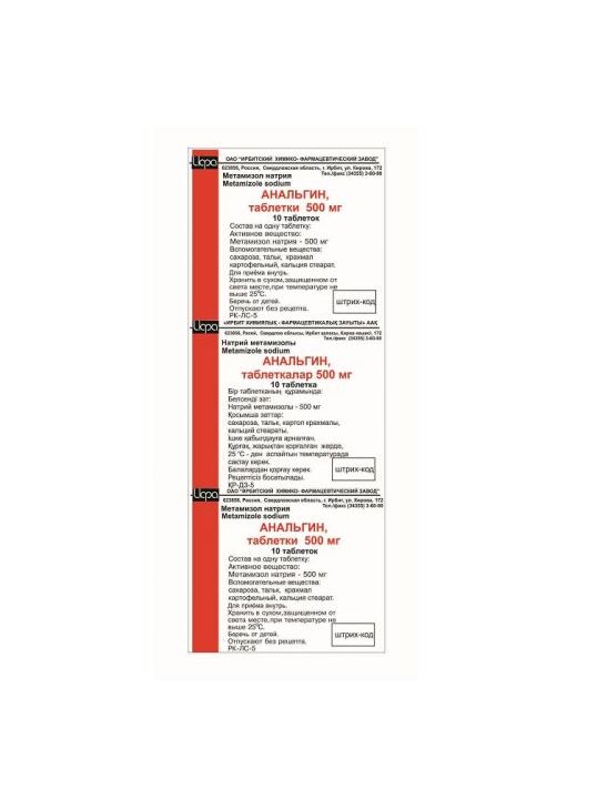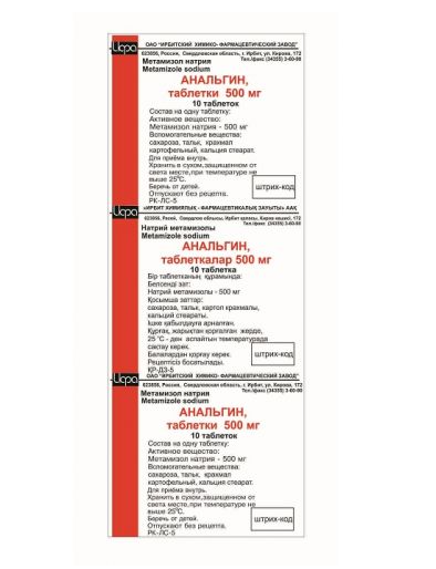 активное вещество - метамизол натрия 500.0 мг,
