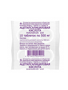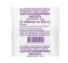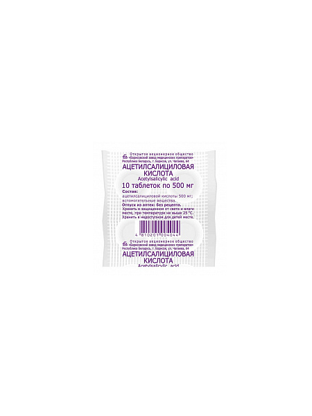активное вещество – ацетилсалициловая кислота 500 мг,