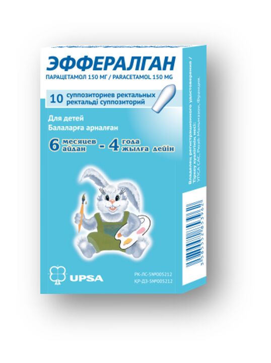 Детям с массой тела от 10 до 14 кг (приблизительно от 6 месяцев до 4 лет) вводят по 1 свече (150 мг) не более 4 раз в сутки через каждые 6 часов, не превышая 4 суппозиториев в сутки.