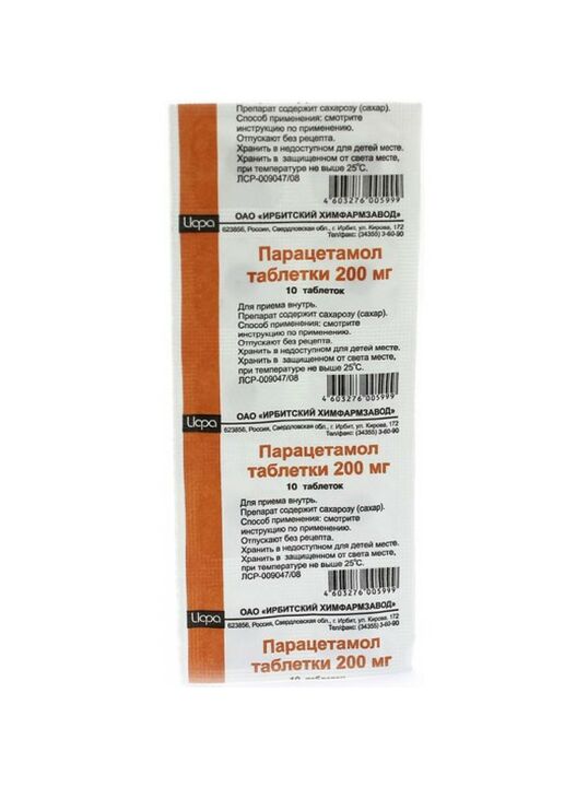 активное вещество - парацетамол 0.2 г,