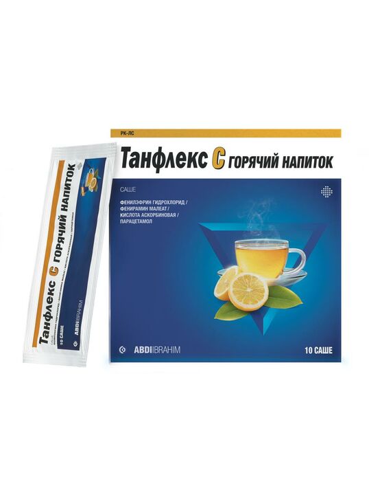 -Танфлекс С горячий напиток показан для облегчения симптомов заложенности носа, головной боли, лихорадки, боли в теле при гриппе, простудных заболеваниях и синусите.