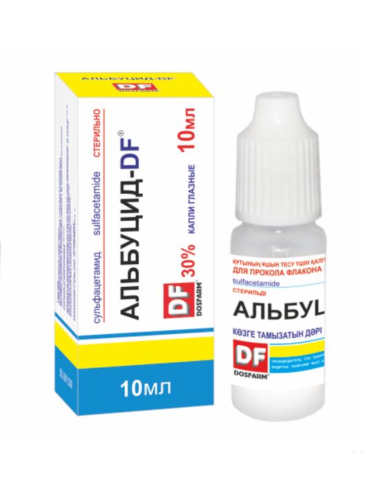 Взрослым применять раствор Альбуцид-DF 30 % по 2 – 3 капли в пораженный глаз 5 – 6 раз в сутки (через каждые 4 – 5 часов).