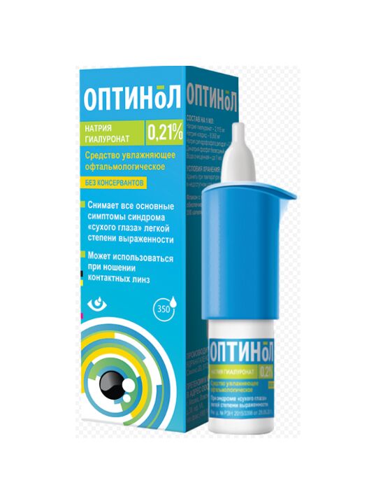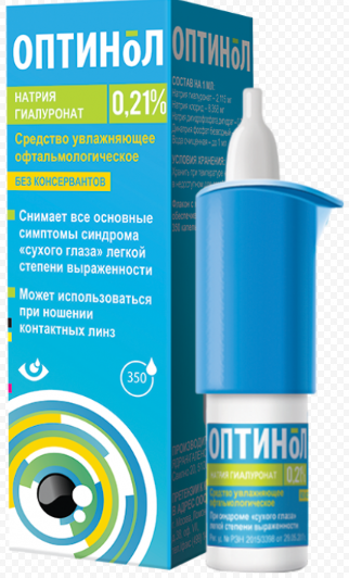 Оптинол – это вязкие капли, содержащие гиалуронат натрия, которые обеспечивают увлажнение и защиту глаза в течение долгого времени.