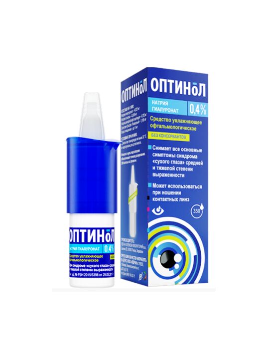 Оптинол®, капли глазные0.4 % предназначены для устранения симптомов синдрома «сухого глаза» средней и тяжелой степеней.