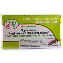 Торговое название Кызыл май с маслом облепиховым Международное непатентованное название Нет Лекарственная форма Суппозитории Состав Один суппозиторий содержит активные вещества: масло облепиховое 0,05 г Кызыл май масло полифитовое 0,2 г вспомогательные вещества: масло какао, воск...