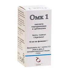 Инструкция по применению медицинского изделия Название медицинского изделия Омк 1, капли глазные стерильные, 10 мл Состав и описание медицинского изделия Прозрачный, бесцветный раствор. Состав капель: гиалуроновая кислота 0,2%, цитиколина мононатриевая соль 2%, натрия фосфата...
