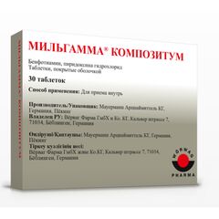 Торговое наименование МИЛЬГАММА ® КОМПОЗИТУМ Международное непатентованное название Нет Лекарственная форма, дозировка Таблетки, покрытые оболочкой Фармакотерапевтическая группа Пищеварительный тракт и обмен веществ. Витамины. Витамин В1, простые и комбинации с витаминами В6 и...