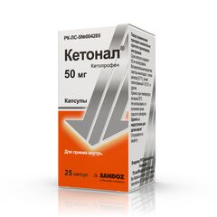 Торговое наименование Кетонал ®   Международное непатентованное название Кетопрофен    Лекарственная форма, дозировка  Капсулы, 50 мг Фармакотерапевтическая группа  Костно-мышечная система. Противовоспалительные и противоревматические препараты....