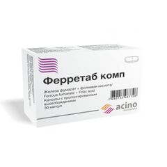 Твердые желатиновые капсулы красного цвета, размер 2. Длина 18.0 ± 0,3 мм, диаметр около 6 мм. Содержимое капсулы – 3 мини-таблетки красновато-коричневого цвета с железа фумаратом и 1 мини-таблетка желтого цвета с кислотой фолиевой. Мини-таблетка с железа фумаратом диаметром около 5 мм,...