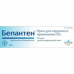 Торговое наименование Бепантен ®   Международное непатентованное название Декспантенол   Лекарственная форма, дозировка Крем для наружного применения 5%   Фармакотерапевтическая группа  Дерматология. Препараты для лечения ран и язв. Ранозаживляющие...