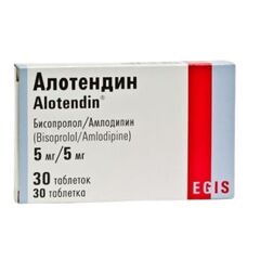 Торговое наименование Алотендин ® Международное непатентованное название Нет Лекарственная форма, дозировка Таблетки, 5 мг/5 мг, 5 мг/10 мг, 10 мг/5 мг, 10 мг/10 мг Фармакотерапевтическая группа   Сердечно-сосудистая система. Бета-адреноблокаторы....