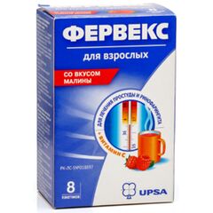 Лекарственная форма Порошок для приготовления раствора для приема внутрь, малиновый с сахаром Состав Один пакетик (12,75 г) содержит активные вещества : парацетамол 0,500 г, аскорбиновая кислота 0,200 г, фенирамина малеат 0,025 г, вспомогательные вещества: сахароза, кислота...