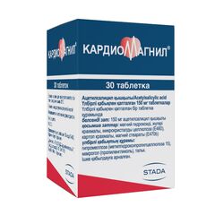 Лекарственная форма, дозировка Таблетки, покрытые пленочной оболочкой, 150 мг Состав лекарственного препарата Одна таблетка, покрытая пленочной оболочкой, содержит активное вещество : ацетилсалициловая кислота, 150 мг вспомогательные вещества: магния гидроксид, крахмал кукурузный,...