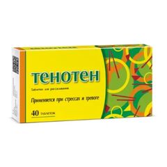 Торговое название Тенотен Международное непатентованное название Нет Лекарственная форма Таблетки для рассасывания. Состав Одна таблетка содержит активное вещество - Антитела к мозгоспецифическому белку S-100 аффинно очищенные 0,003 г*. вспомогательные вещества : лактозы...