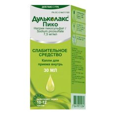 Лекарственная форма, дозировка  Капли для приема внутрь 7,5 мг/мл 15 мл, 30 мл Фармакотерапевтическая группа  Пищеварительный тракт и обмен веществ. Препараты для лечения запоров. Контактные слабительные препараты. Натрия пикосульфат. Код АТХ А06АВ08 Показания к применению...