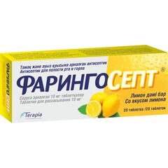 Лекарственная форма, дозировка Таблетки для рассасывания со вкусом лимона, 10 мг Состав лекарственного препарата Одна таблетка содержит активное вещество – амбазона моногидрат 10 мг, вспомогательные вещества: сахароза, лактозы моногидрат, какао, повидон К 30, кислота стеариновая,...