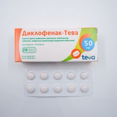 Состав лекарственного препарата Одна таблетка содержит активное вещество - диклофенак натрия 50 мг, вспомогательные вещества: целлюлоза микрокристаллическая, натрий крахмал гликолят, тальк, натрий стеарил фумарат, кремний коллоидный безводный, гипромеллоза, состав оболочки :...