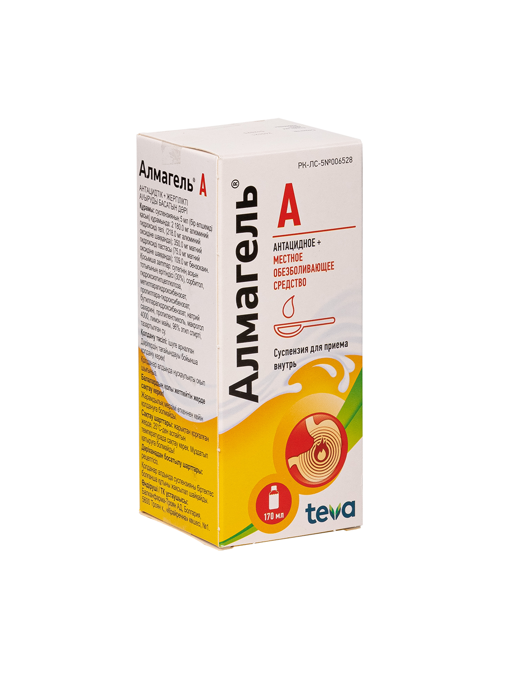 Алмагель®А – препарат, снижающий повышенную кислотность желудочного сока и облегчающий боль при некоторых желудочно – кишечных заболеваниях. Алмагель®А представляет собой сбалансированный гель гидроксидов алюминия и магния, которые являются нерастворимыми, почти не всасываются в кишечнике и поступают в организм в минимальном количестве. Алмагель®А проявляет местное действие на слизистую оболочку желудка и предохраняет ее от раздражающего действия соляной кислоты, и других вредных веществ пищи, а так же снижает активность пепсина. Препарат снижает повышенную кислотность в пищеводе. Алмагель®А содержит бензокаин (анестезин), который является местным обезболивающим средством. Бензокаин оказывает местное обезболивающее действие при наличии выраженного болевого синдрома. Оказывает противовоспалительное и цитопротективное действие на слизистую оболочку пищевода, желудка и двенадцатиперстной кишки.