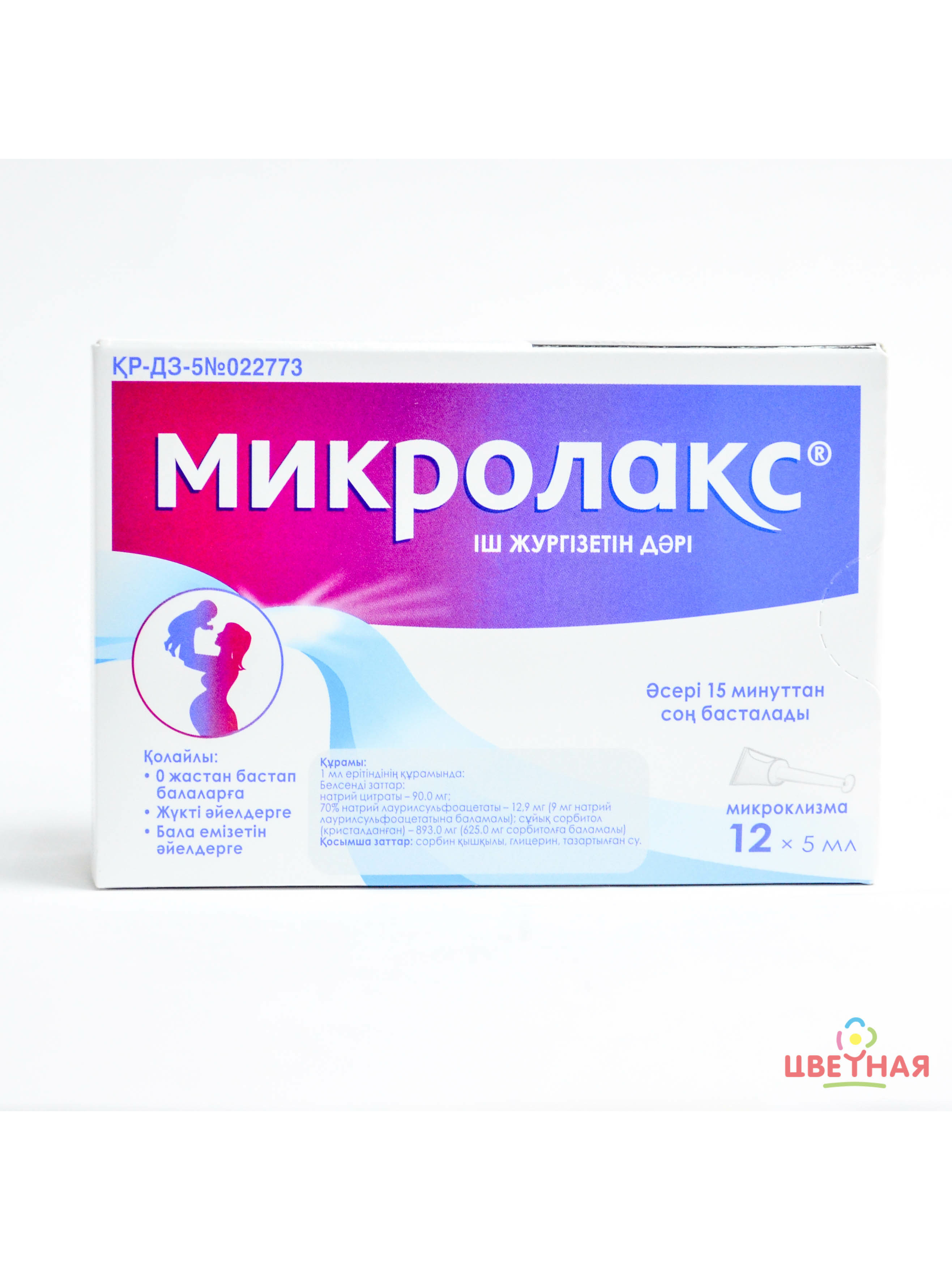 По 4 или 12 микроклизм вместе с инструкцией по медицинскому применению на казахском и русском языках помещают в картонную пачку.