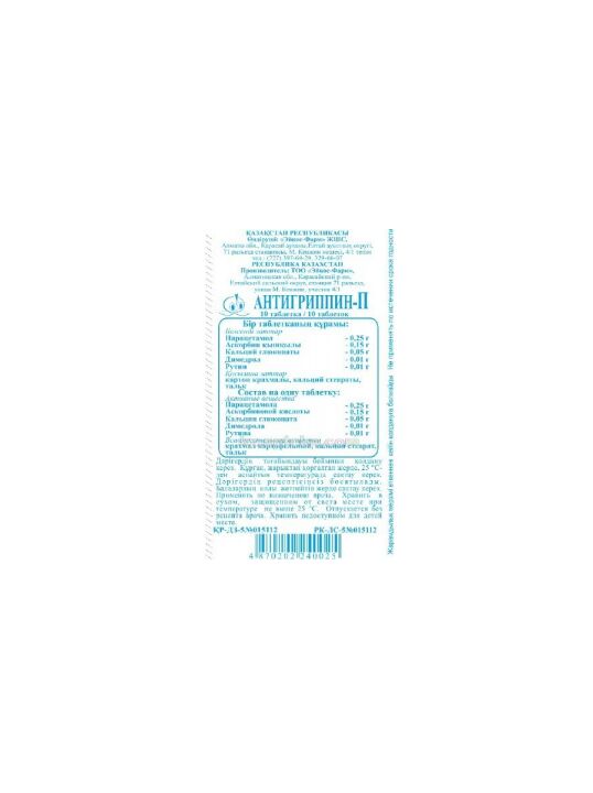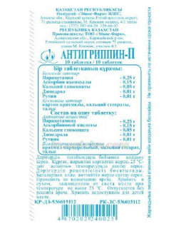 активные вещества: парацетамол - 0.25 г, аскорбиновая кислота - 0.15 г, кальция глюконат - 0.05 г, димедрол - 0.01 г, рутин - 0.01 г,