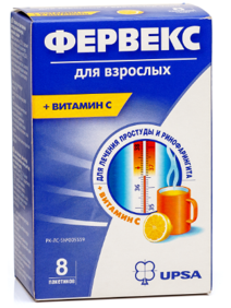 активные вещества: парацетамол 0,500 г, аскорбиновая кислота 0,200 г, фенирамина малеат 0,025 г,