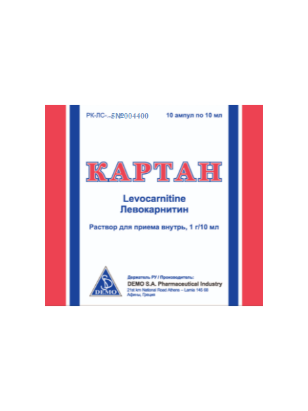 Длительный пероральный прием высоких доз Картана у пациентов с тяжелыми нарушениями функции почек или находящихся на диализе в терминальной стадии почечной недостаточности может вызвать повышение концентрации потенциально токсичных метаболитов, триметиламина (ТМА) и триметиламина-N-оксида (ТМАО), которые обычно выделяются с мочой. Внутривенное введение высоких доз не приводит к накоплению токсичных метаболитов.