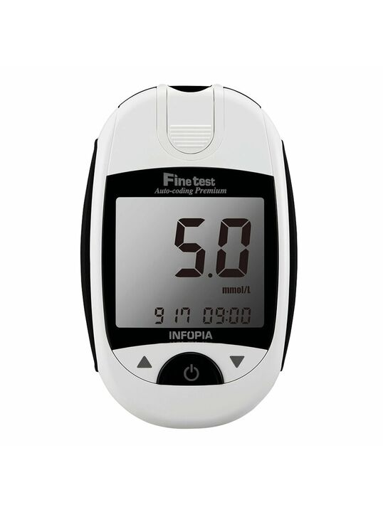 Технические характеристики: Тип образца: Цельная капиллярная кровь Объем: 1,5 Диапазон измерений: 10~600 мг/дл (0,55 – 33,3 ммоль/л) Время чтения: 9 секунды Калибровка: Плазма крови Высота:< 3048м (10,000) Рабочая температура: 10-40"c (50-104°F) Рабочая влажность: 10-90% Температура хранения тест полосок: 2-30"c (36-86T) Размер: 85 X 56 X 20 (мм) Вес: 48г (с батарейкой) Тип дисплея: ЖК Мощность: 3В литиевая батарейка (CR2032) х 2