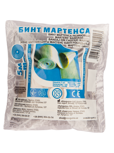 Бинт Мартенса резиновый - эластичное изделие многократного использования, переносит дезинфекцию до пяти раз. Не оказывает вредных воздействий на здоровье человека.