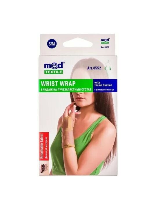 - Бандаж на запястье с фиксацией пальца MedTextile № 8552 подходит для левой и правой руки