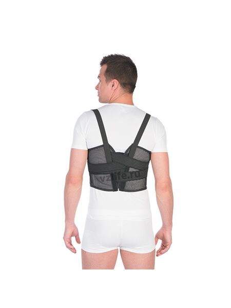 • имеет нерастяжимую переднюю панель для надежной фиксации переднебоковых частей грудной клетки и эластичную заднюю часть для сохранения мышечного тонуса