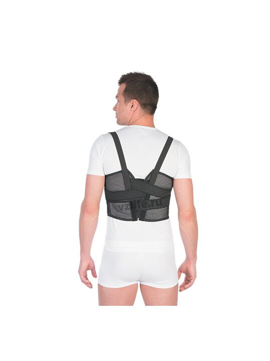• имеет нерастяжимую переднюю панель для надежной фиксации переднебоковых частей грудной клетки и эластичную заднюю часть для сохранения мышечного тонуса