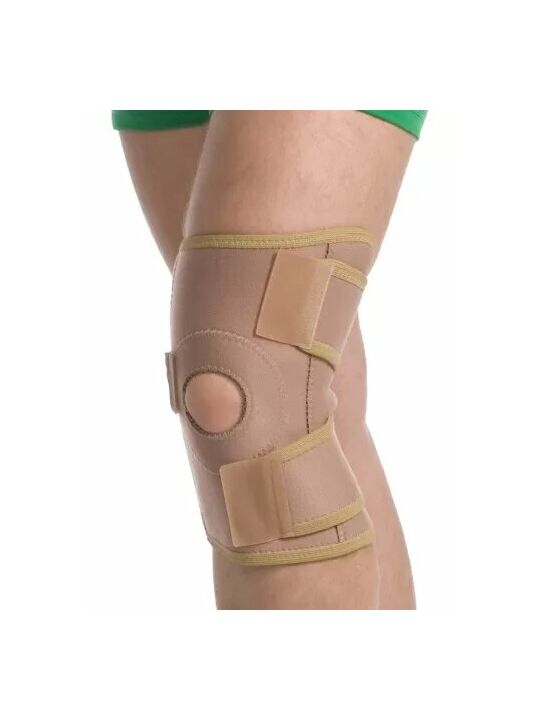 - Специальные отверстие и упругий валик-кольцо на изделии ограничивают подвижность и надежно защищают коленную чашечку.