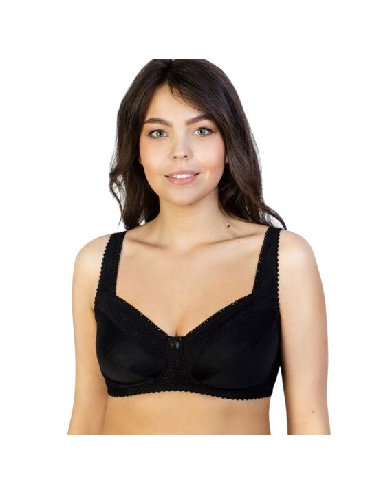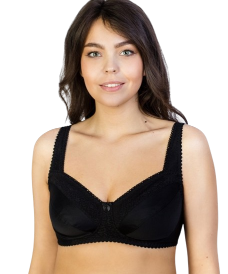 Бюстгальтер для фиксации протеза молочной железы из эластичного кружева, трикотажного полотна, эластичного полотна, с втачными карманами для протеза из х/б трикотажного полотна. Чашка мягкая. Пояс с застежкой сзади на 2-3 крючка. Бретель широкая, кружевная, на дубляже с хлопком, с регулировкой длины сзади. Отделка – бантик.