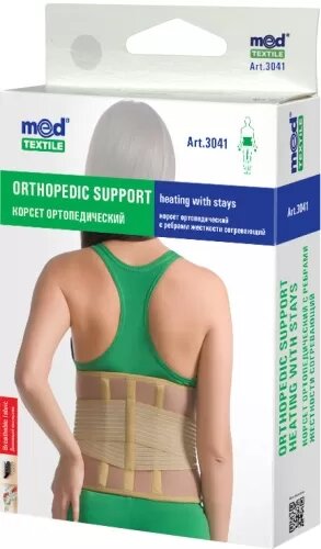 - Три пластиковых ребра жесткости в корсете обеспечивают дополнительную поддержку в пояснично-крестцовом отделе позвоночника.