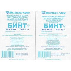 Описание: Бинт марлевый медицинский хлопчатобумажный «Советский стандарт» стерильный тип 20 (от 27,0 до 36 г/м2) размеры: 5 м х 7 см; 5 м х 10; 7 м х 14 см; тип 22 (от 30,0 до 40 г/м2) размеры: 5 м х 10; 7 м х 12 см; 7 м х 14 см. Состав и описание медицинского изделия:...