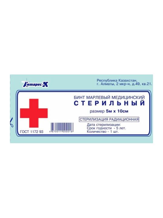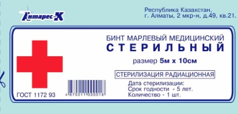 Бинт марлевый медицинский стерильный размером : 5м х 10см,7м х 14см